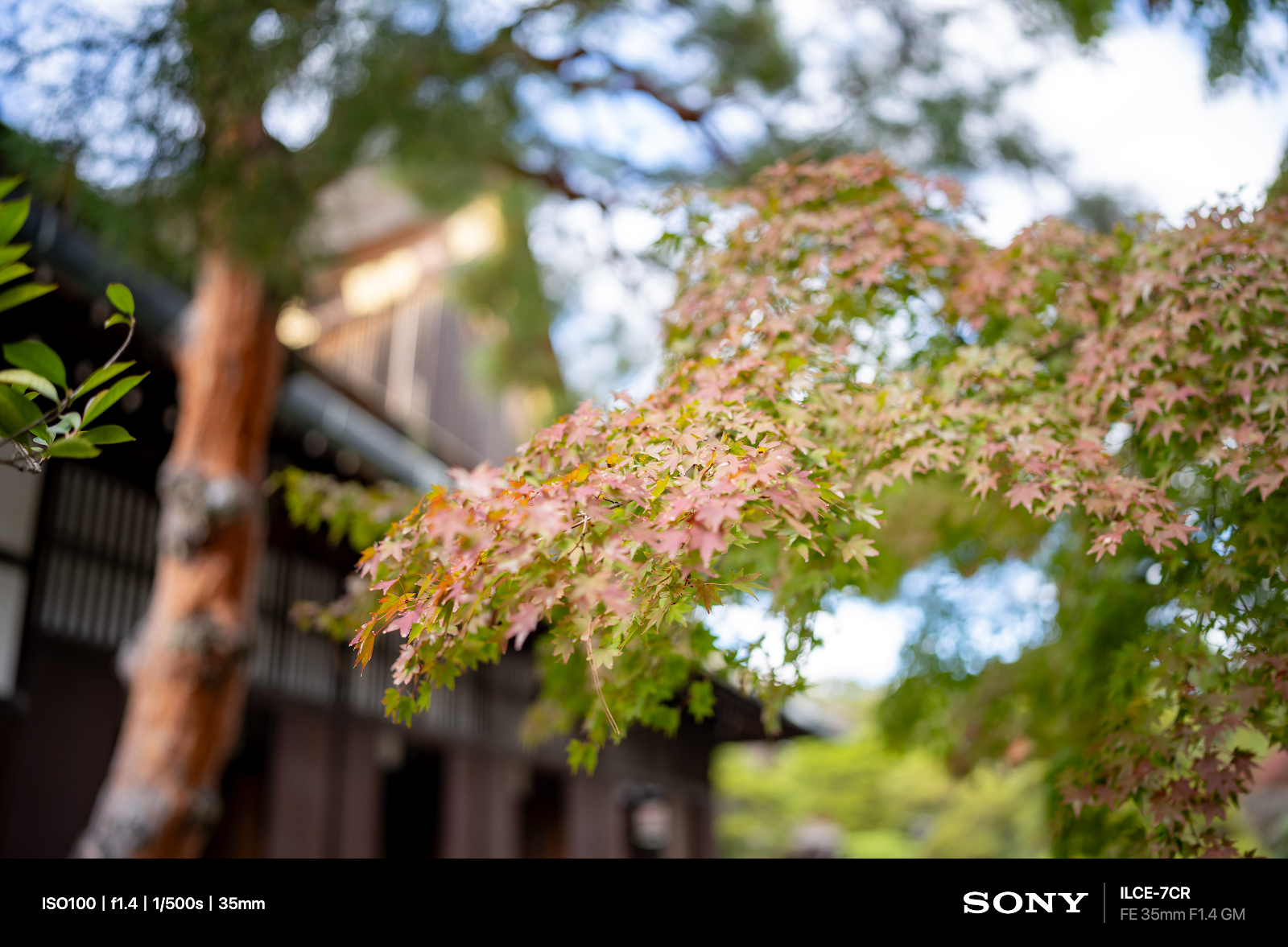 進入永觀堂,按照位置順序的話 是先脫鞋參觀禪林寺各個佛寺 然後再去園區賞楓,看看小橋流水 這個顏色...按照水果熟度來分類的話, 就是還沒熟吧,吃了會很澀很酸的還沒熟那種... 進到室內很自然而然的就會換上14GM 因為廣角鏡在室內比較不會有退無可退的情況 可以輕易的一鏡拍下整個室內景觀 順路的走完一些室內佛寺,再走進園區便是最熱門的賞楓地點 放生池與極樂橋,小橋流水與楓紅的極致賞楓之地 不過我們到時還沒完全楓紅 前方便是放生池上的極樂橋 這是在放生池中央的弁天社 前面通往弁天社的小橋叫做錦雲橋 在這裡有個可以小憩的地方可以坐下吃吃點心品個茶 同時因為到了室外,因為拍攝距離較大較有彈性, 便在這邊換上了拍照體驗較有氛圍, 有壓縮感、有切割感、有景深的85焦段的Sigma 85DGDN 來拍些跟標準焦段比較不一樣的糖水照 長焦拍起來畫面前後景深景物分明感覺特別爽XD 最後我們是延原路 繞過南禪寺走回停車場,前往下一個景點